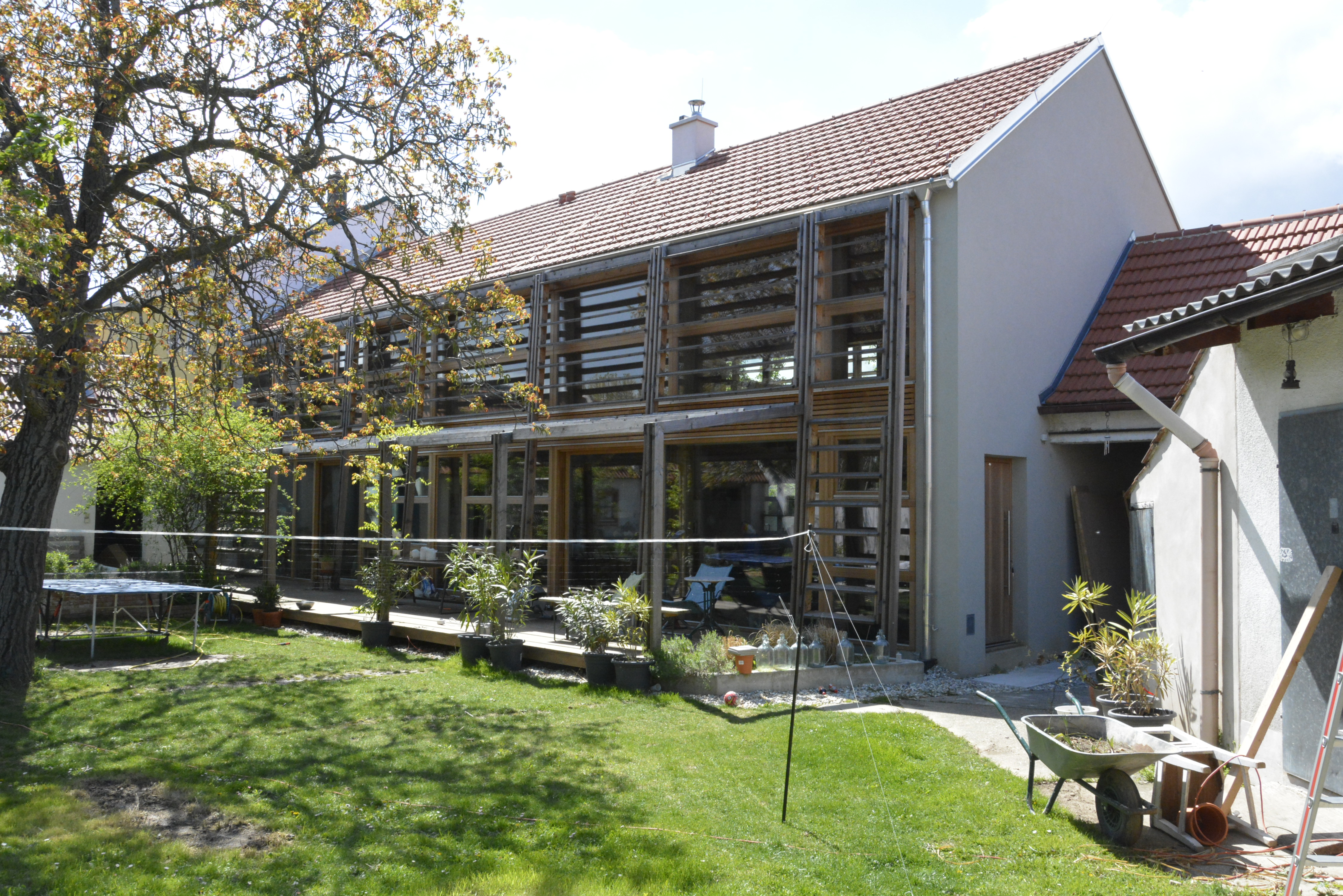 Energieeffizienz und Ökologie sind die Bausteine, auf denen das Haus aufgebaut ist. Ein reiner massiver Ziegelbau bildet die Basis für eine energieeffiziente Bauweise, die nicht nur durch ihre Langlebigkeit besticht. Eine optimale Dämmung aus mineralischen werkstoffen, eine drei Scheiben-Wärmeschutzverglasung der Fenster und ein extensiv begrüntes Dach bilden die Gebäudehülle. Die benötigte Energie, um das Wohnhaus im Winter über die Fußbodenheizung angenehm warm zu halten, wird über einen erneuerbaren Energieträger bezogen (Erdwärmepumpe). An den heißen Sommertagen kühlt nicht nur die nahe Donau und die Auenwälder die Luft, sondern die Erdwärmepumpe kann auch zum Kühlen verwendet werden. Zusätzlich wird der dafür benötigte Strom mittels einer Photovoltaikanlage am Dach erzeugt. Es ist ein Zusammenspiel auf dem neuesten Stand der Technik, um ein nachhaltiges Wohnen zu gewährleisten.