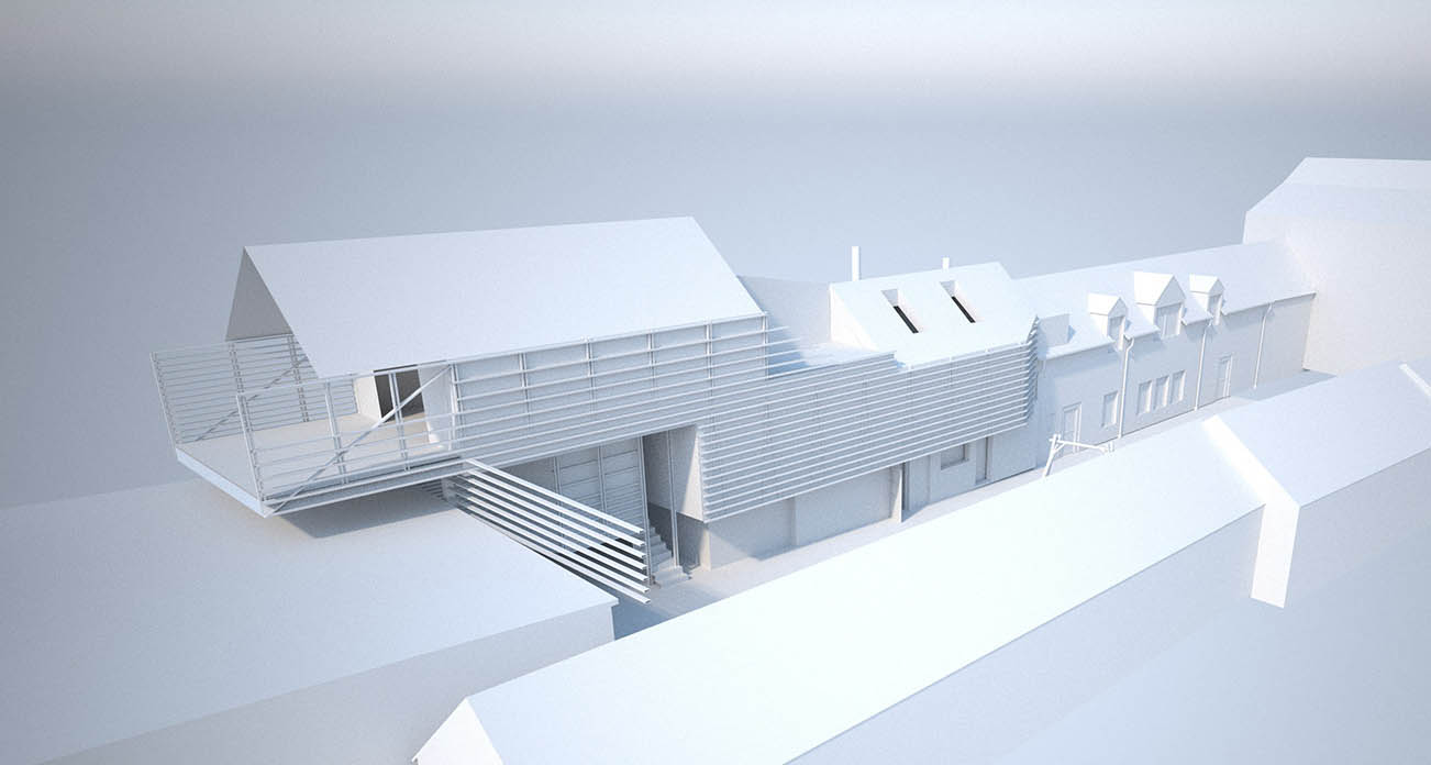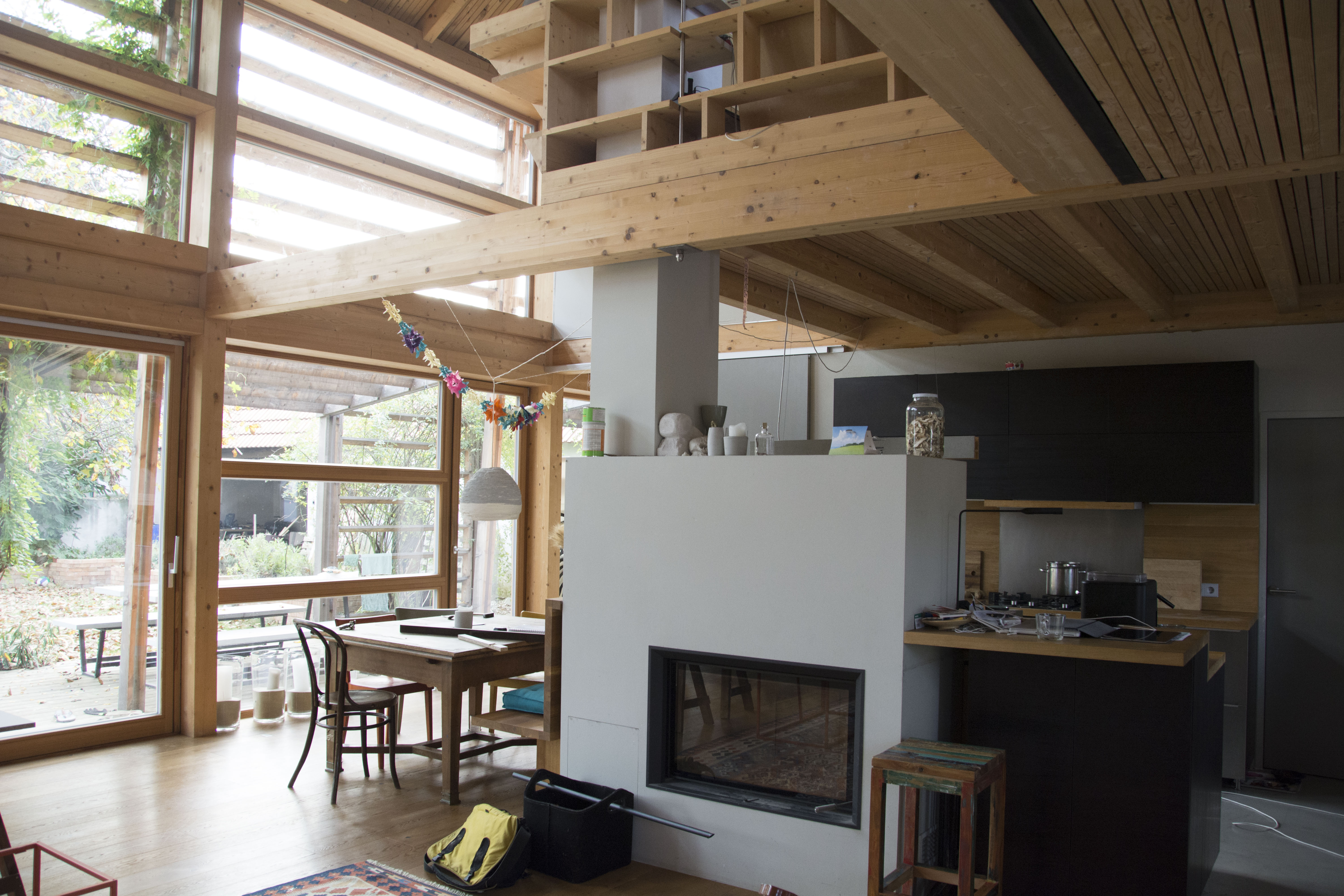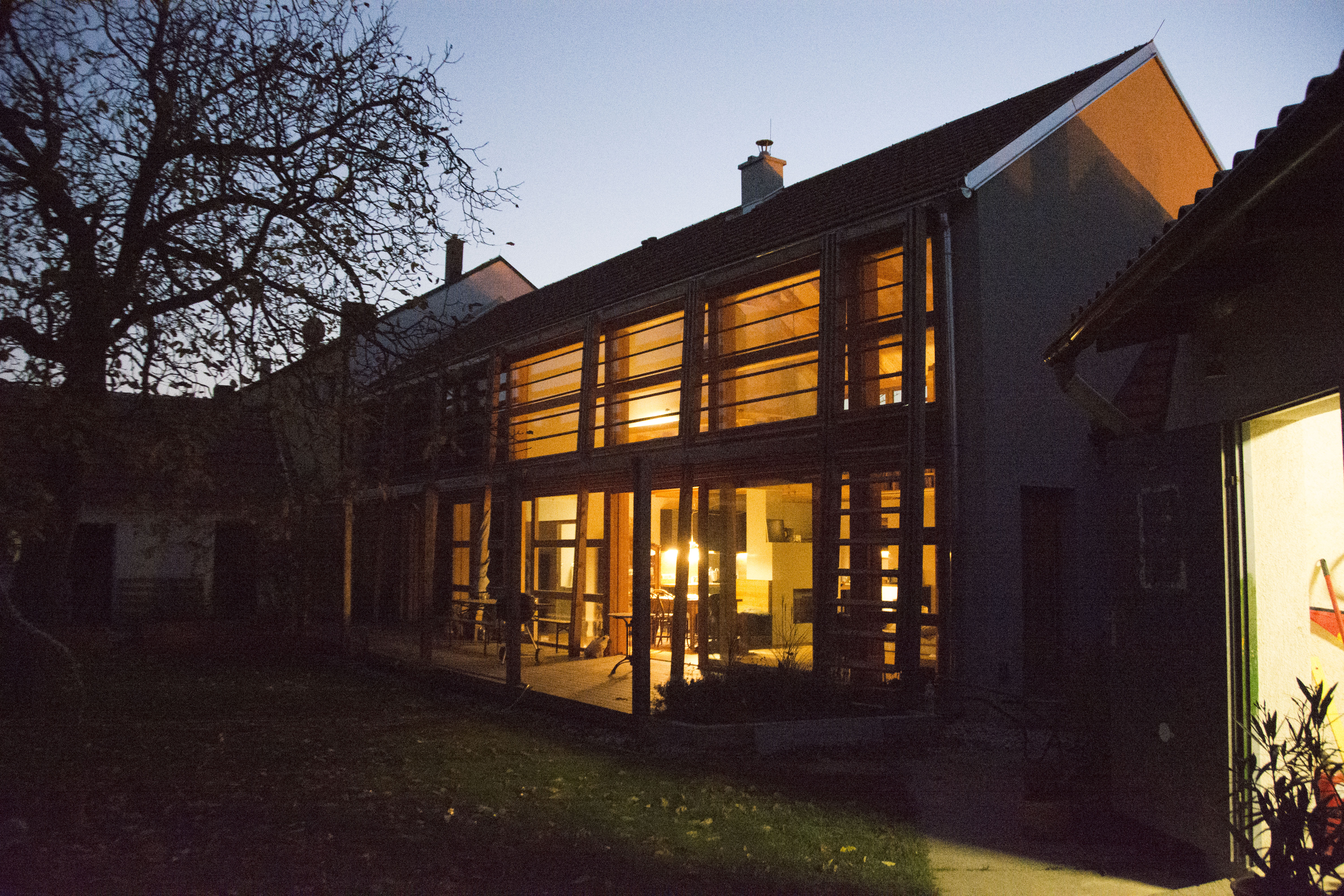 Ein Bestandshaus wird als neues Zuhause für einen Koch und Grillmeister und seine Familie in einen modernen Lebensraum transfomiert. Auch hier bildet ein Atrium das Zentrum des Geschehens im Aussenraum, wohin sich die Räume und das Leben orientierten. Ein zusätzlicher Dachaufbau im Westen des Hauses schenkt den zwei Söhnen einen neuen großzügigen Wohnraum. Der Hauptraum wird hingegen in seiner vollen Höhe genutzt. Der alte Dachstuhl bleibt mit sichtbaren Blaken sichtbar bestehen.