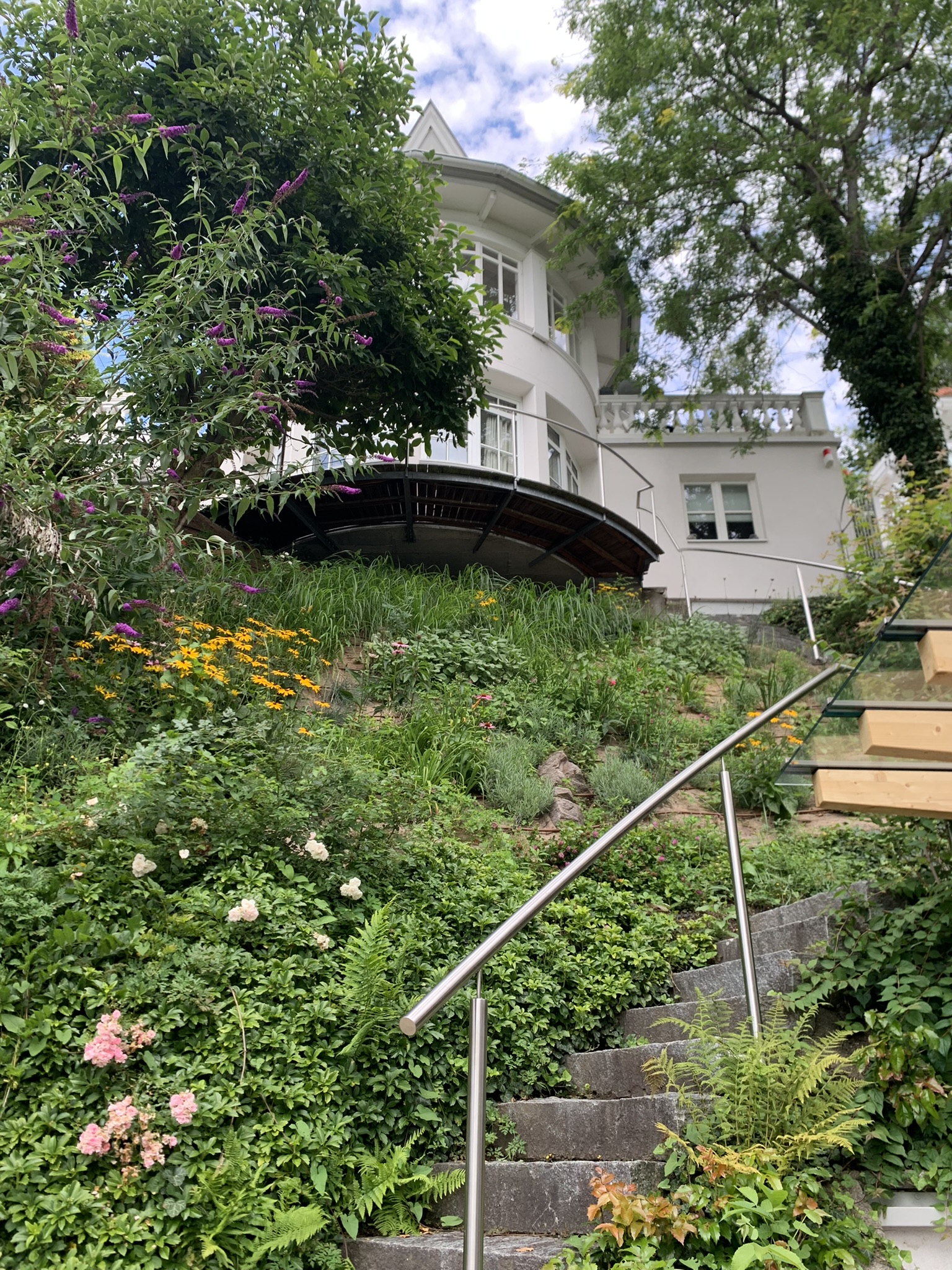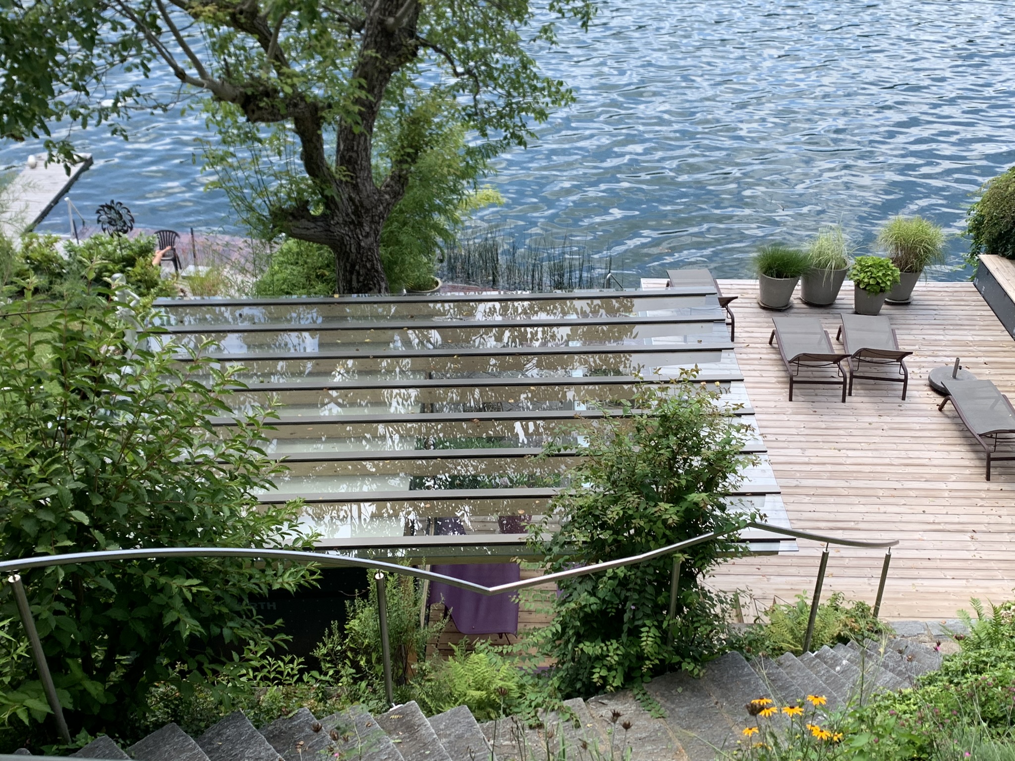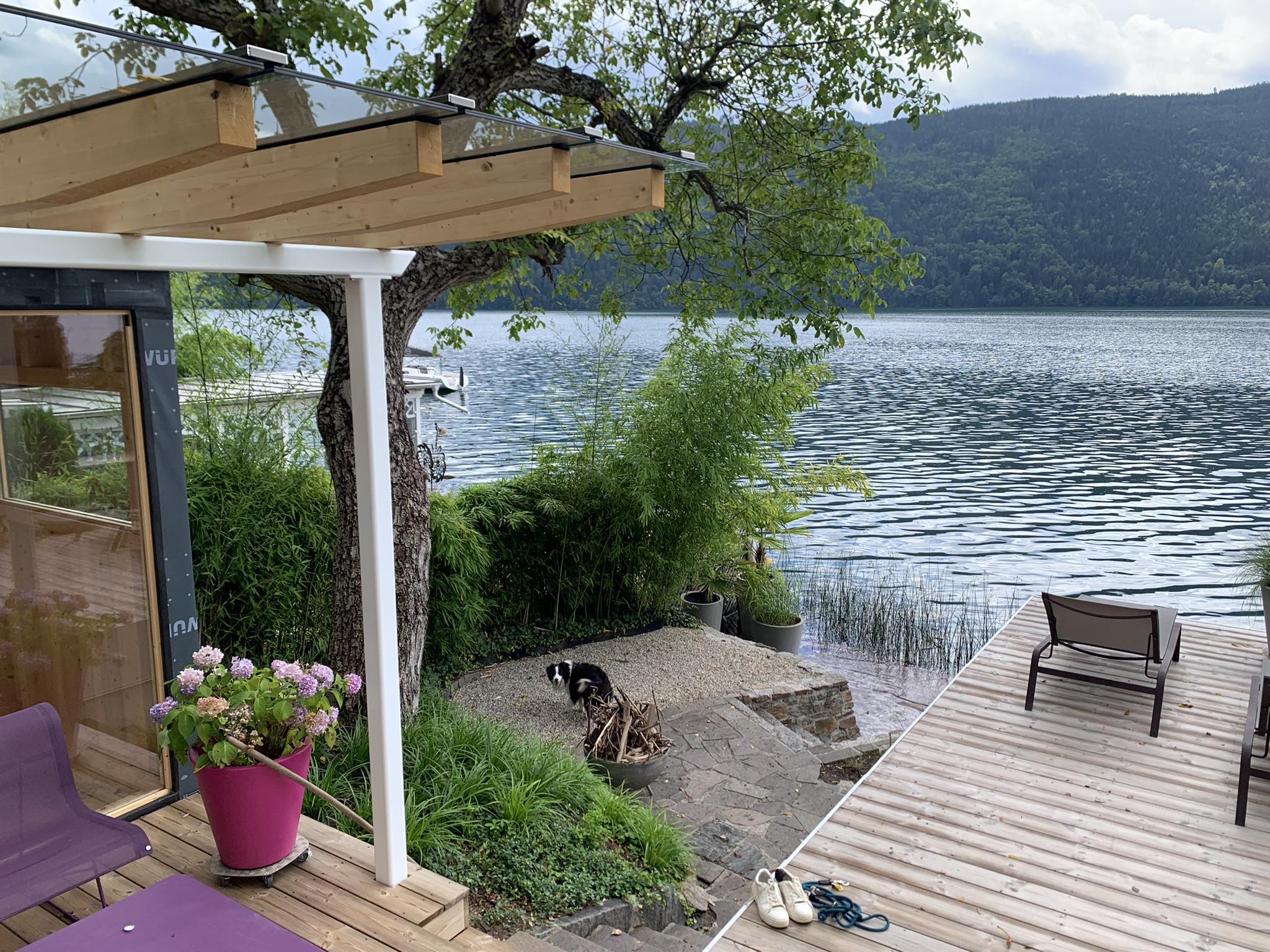 Eine Unternehmerin die eine Villa in wunderschöner Lage am Millstätter See besitzt, überlegt ob sie die Villa (aus den 80ern) abreißen und neu bauen soll, oder nicht. Wir analysieren die Situation und erkennen, daß das Problem nicht am Gebäude selbst liegt, welches tatsächlich mit etwas Auffrischung sehr gute Qualitäten aufweist, sondern am Garten, den desolaten Außenanlagen, feuchten dunklen Ecken und Terrassen und der dunklen hässlichen 80er Jahre Bepflanzung am Hang und Ufer des Geländes.