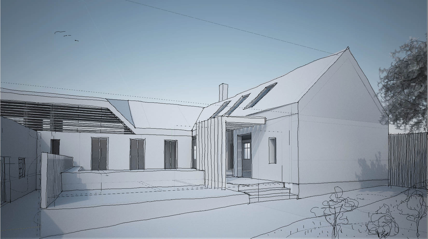 Ein Grundstück in einer niederösterreichischen bestehenden Dorfstruktur bildet der Grundstock von drei Lösungsvorschlägen für eine Einfamilienhaus. Der Bestand wurde nach langer Begutachtung abgerissen und eine neue Wohneinheit sollte in dem dicht verbauten Ort entstehen. Alle drei Vorschläge erhalten die geschlossene Bausubstanz zur Straße hin. Des Weiteren wurden viele Sonnenstudien erarbeitet.