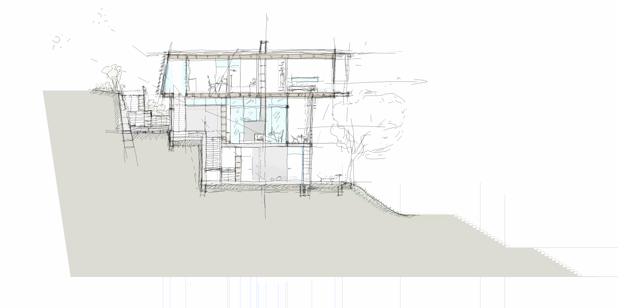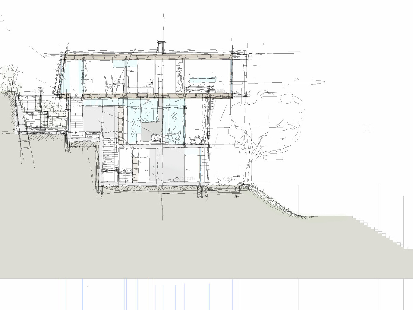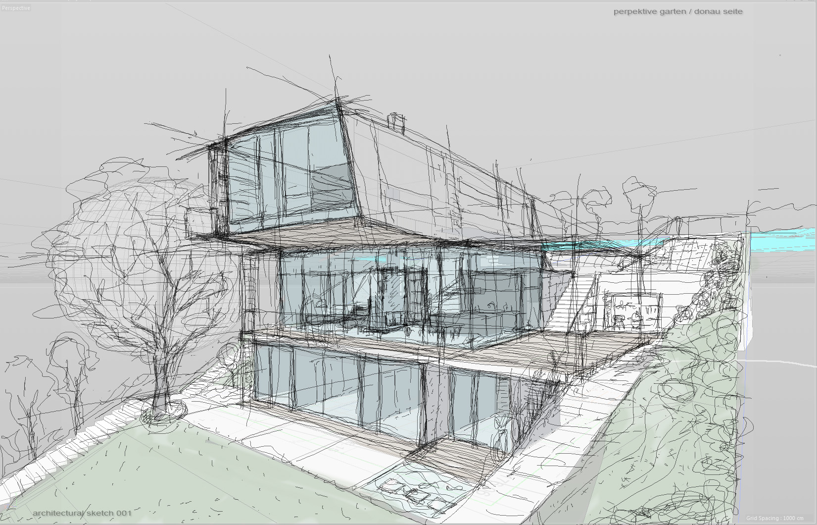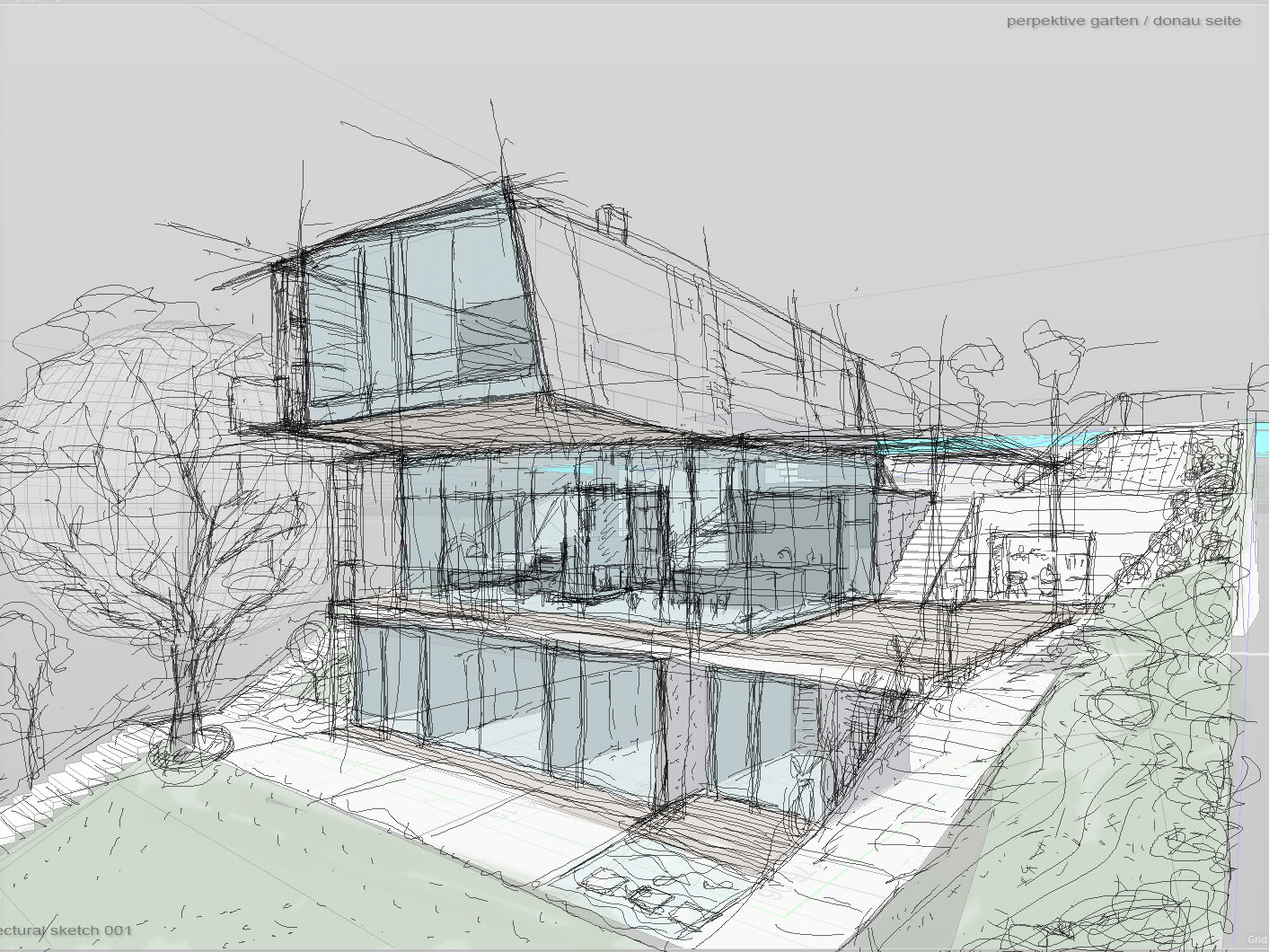 Für einen Software Entrepreneur und seine Frau wurde diese 3 stöckige, ögologische Villa in der Nähe von Wien entworfen. Sie liegt an einem steilen Hang mit wunderschöner Aussicht über die Donau-Auen bis nach Wien. Im unteren Geschoß sind die Aufenthalts und Schlafräume der Kinder, mit direktem Zugang zum Garten. Das mittlere Geschoß ist fast vollkommen gläsern mit großer, teileise überdachter Terrasse, und Fokus auf den Weitblick. Es bietet auch durchgehende direkte Sonnenbelichtung von Morgens bis Abends.
