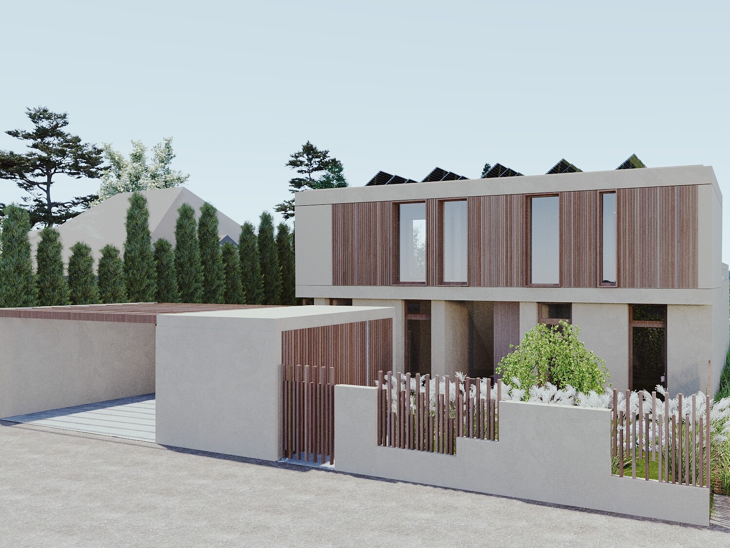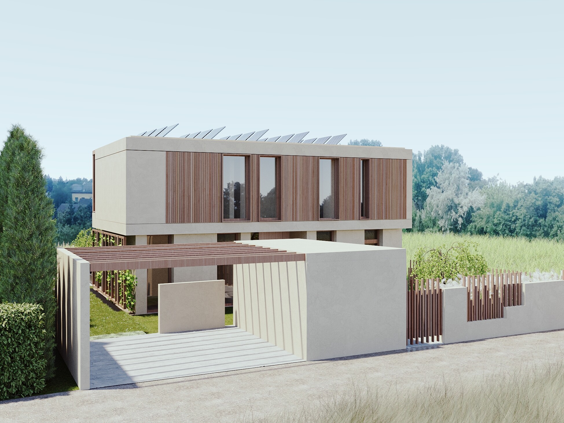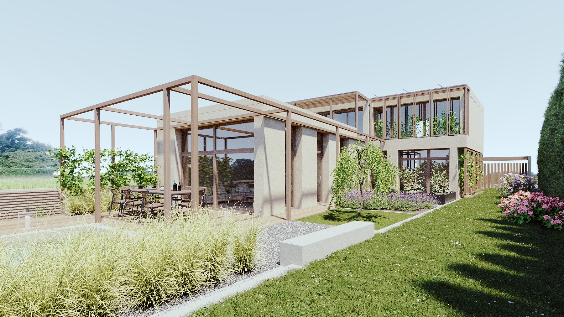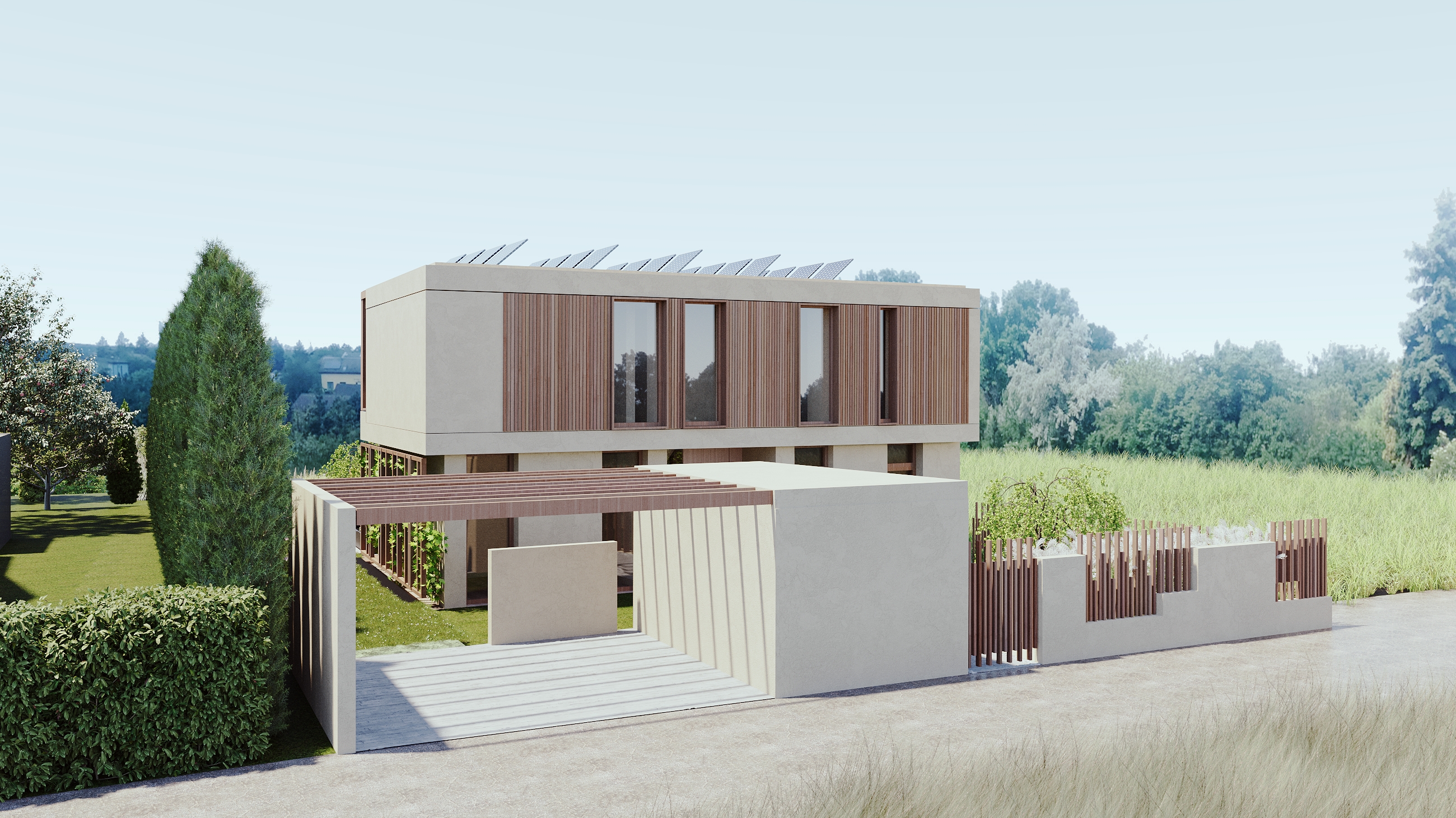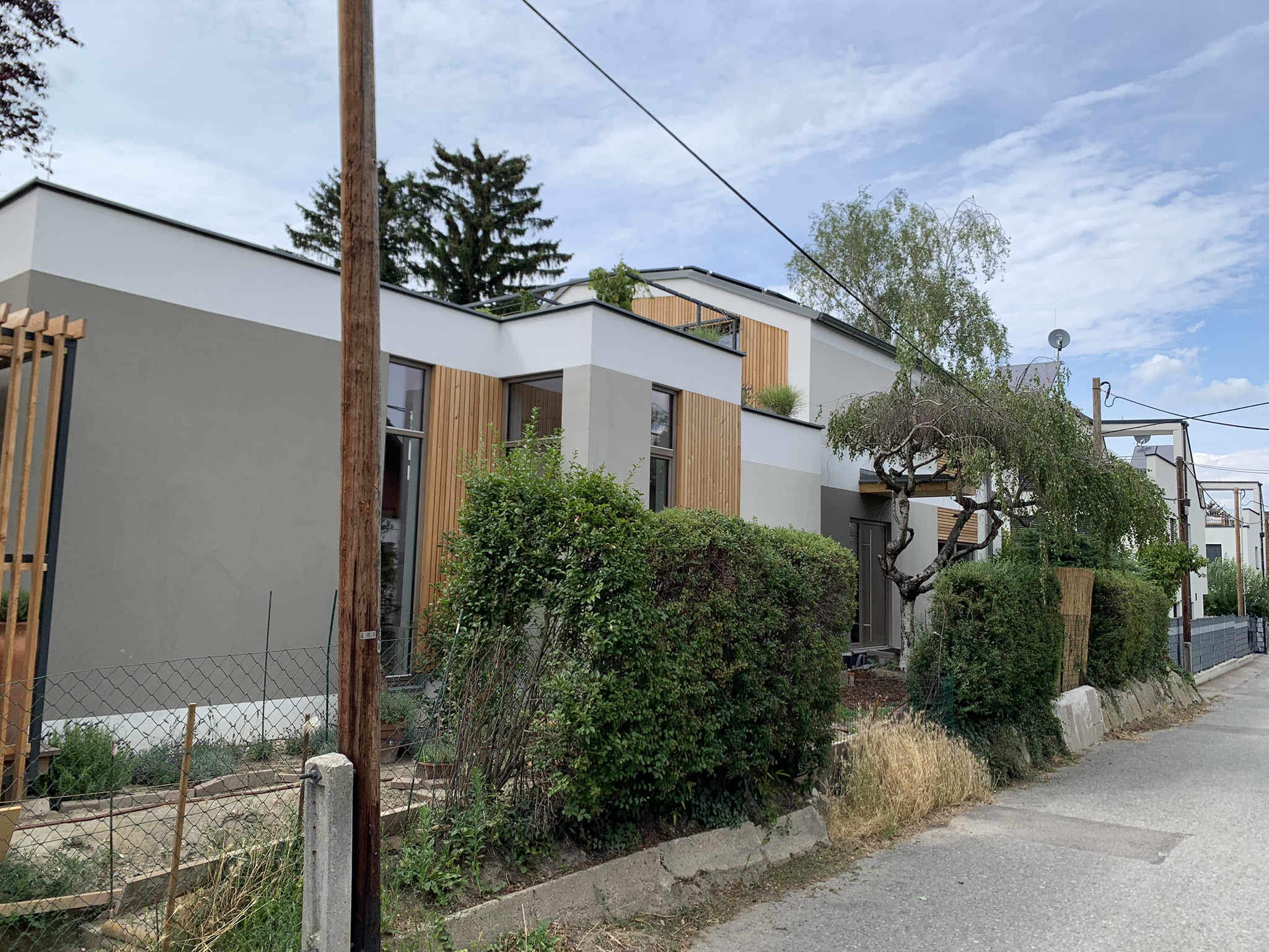 Die Architektur greift dabei typisch pannonischen Baukulturelementen auf, wie auch das zeitlose Prinzip der römischen Atriumhäuser. Das Zentrum des Wohnhause bildet in seiner Mitte ein zum Himmel geöffneter zentraler Raum. Damit jedoch eine Privatheit entstehen bleibt, kann das Atrium gegen die Straße hin geschlossen werden. Im Sommer wird es auf der Südseite zu heiß, und darum kann man auch auf die Sonnenterrase im N/O ausweichen, die Schutz vor der intensiven Sonneneinstrahlung gibt.