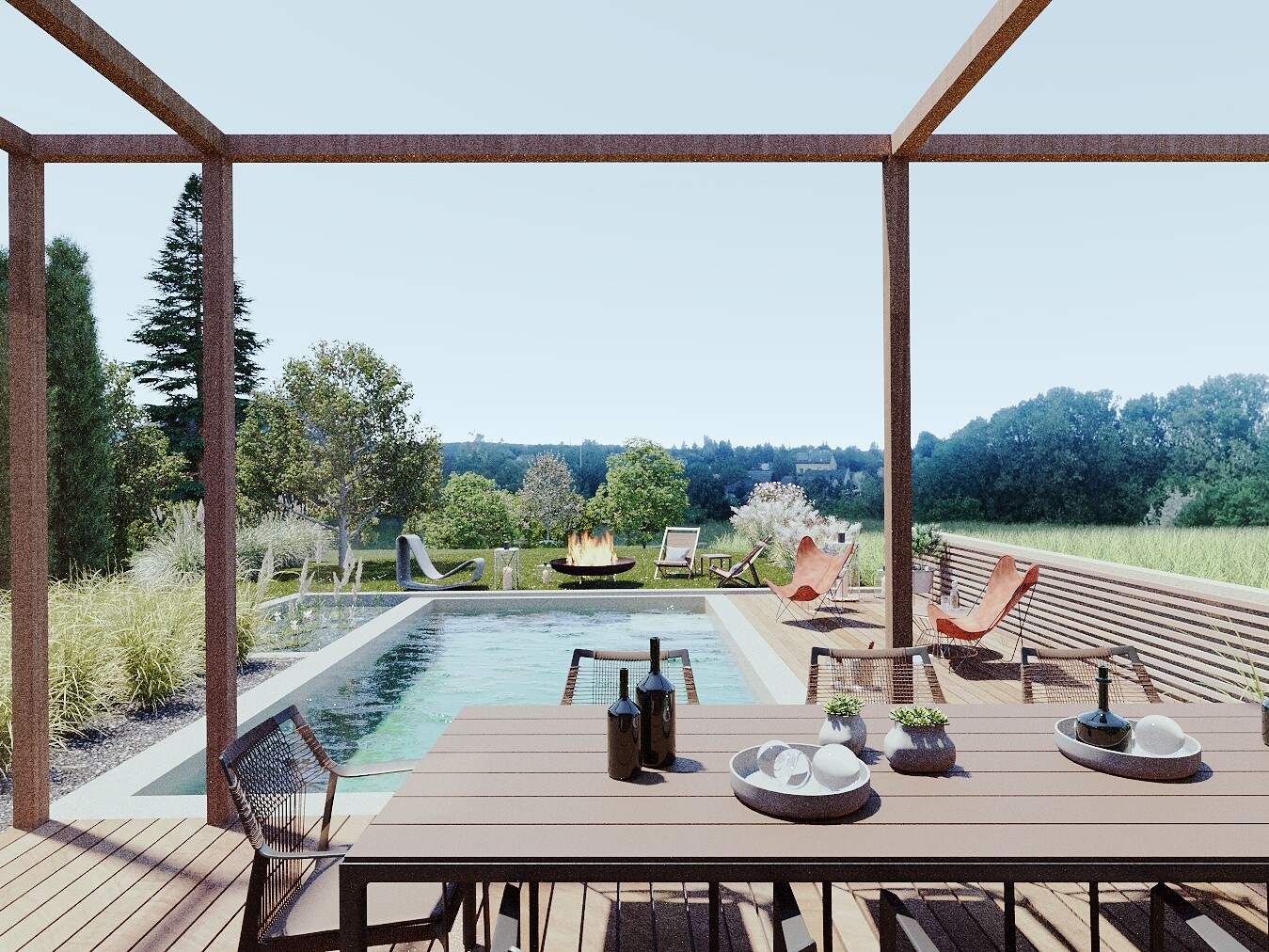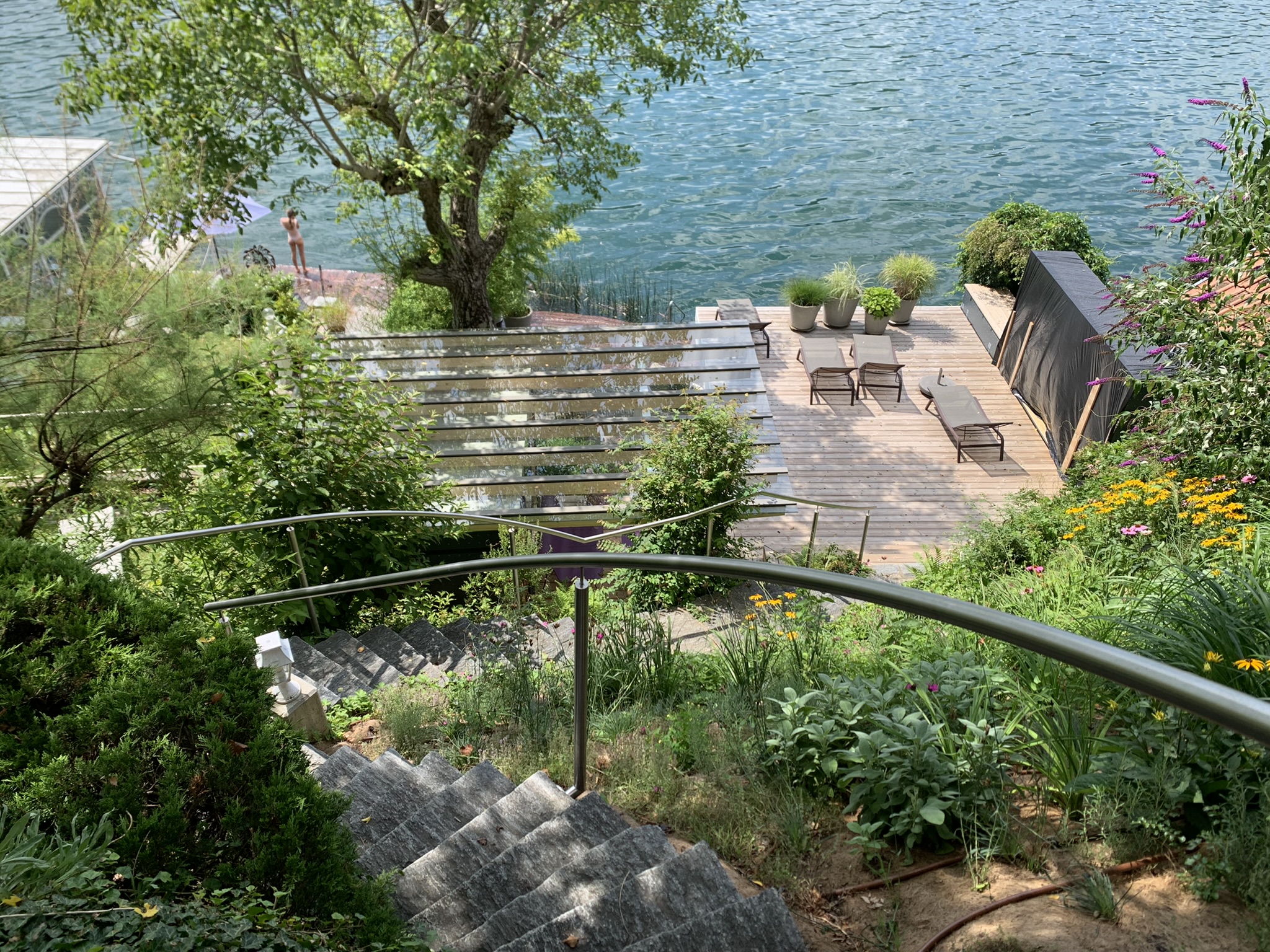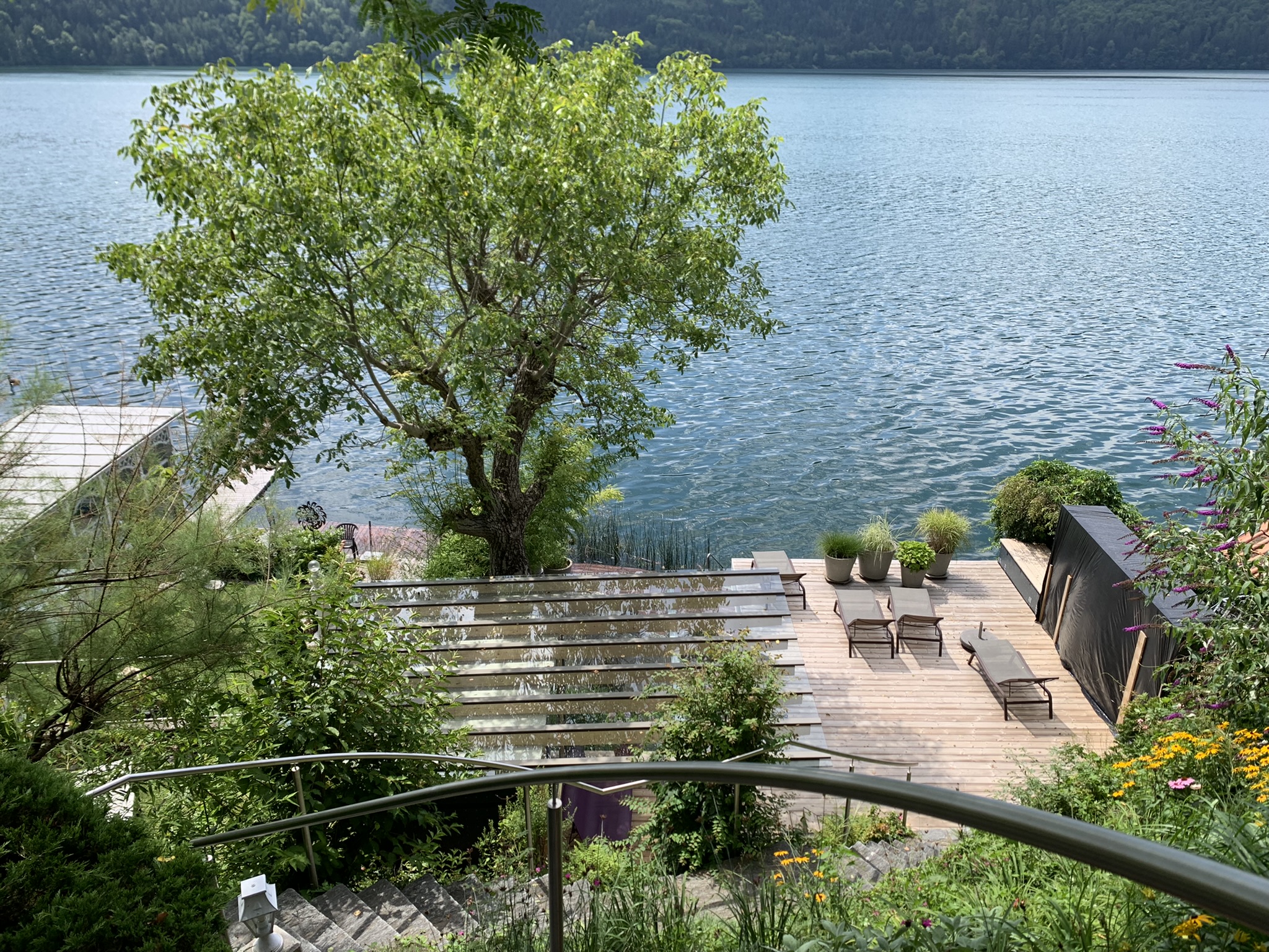 Wir entwerfen die Terrasse, das Bootshaus und die Uferzone neu, wobei so viel wie möglich vom Original erhalten wird, und dennoch alles transformiert und nun wieder hochwertig erscheint. Neue Zonen wie der “Tel Aviv Beach”, die Sauna und eine Außenküche sowie eine Sonnenterrasse enstehen. Ein und Ausblicke werden sanft und elegant umgelenkt. Die südlich exponierte Hangbepflanzung komplett neu angedacht (mit Hilfe des Biologen Dr. Gerald Navara), frisch, hell und leicht mediteran angehaucht. Opulente, kitschige Geländer werden entfernt bzw teilweise neu designed.