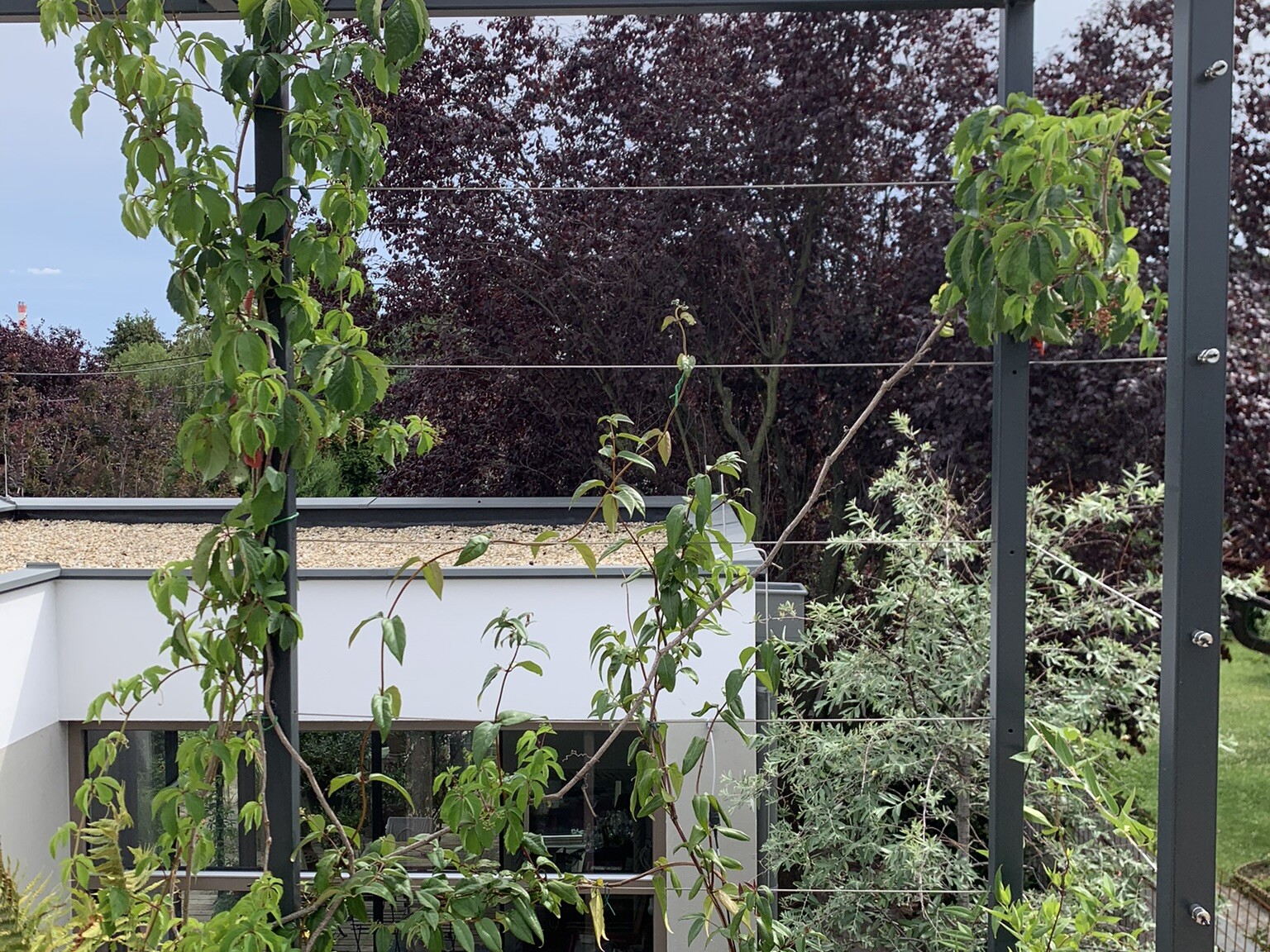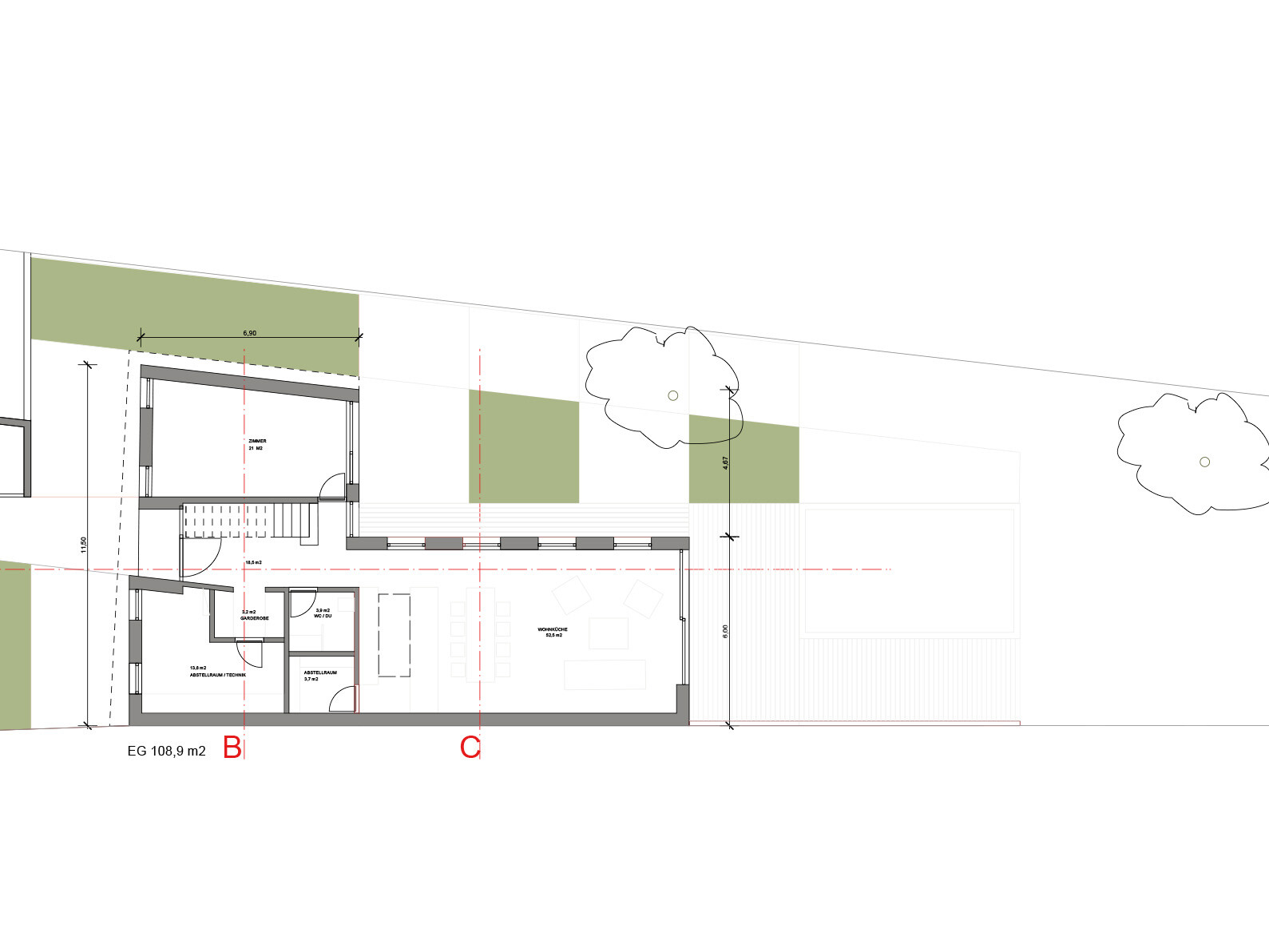 Ein Wohnhaus für ein kunst-affines, kreatives Ehepaar mit Kind, als Oase mitten in der Stadt in Wien. Unsere Aufgabe war es fast alle Bäume auf einem bestehendem ca 650m2 Gartengrundstück bestehen zu lassen und ein Gebäude, einen Lebensraum für eine Familie zu schaffen, das sich in die enstehenden Zwischenräume des Gartens und Baumbestandes einbettet. Ein unmögliche Aufgabe? Fanden wir nicht und konnten einen Grossteil des wunderschönen Baumbestandes und Gartens erhalten! Die Architektur bildet Atrien, ertaunliche Durchblicke, qualitätvolle Räume und Zwischenräume zum Verweilen und genießen. Es wirkt durch die räumliche Vielfalt und Symbiose mit dem Baumbestand deutlich größer als die maximal erlaubten 130m2. Eines der spannensten Projekte der letzen Zeit!