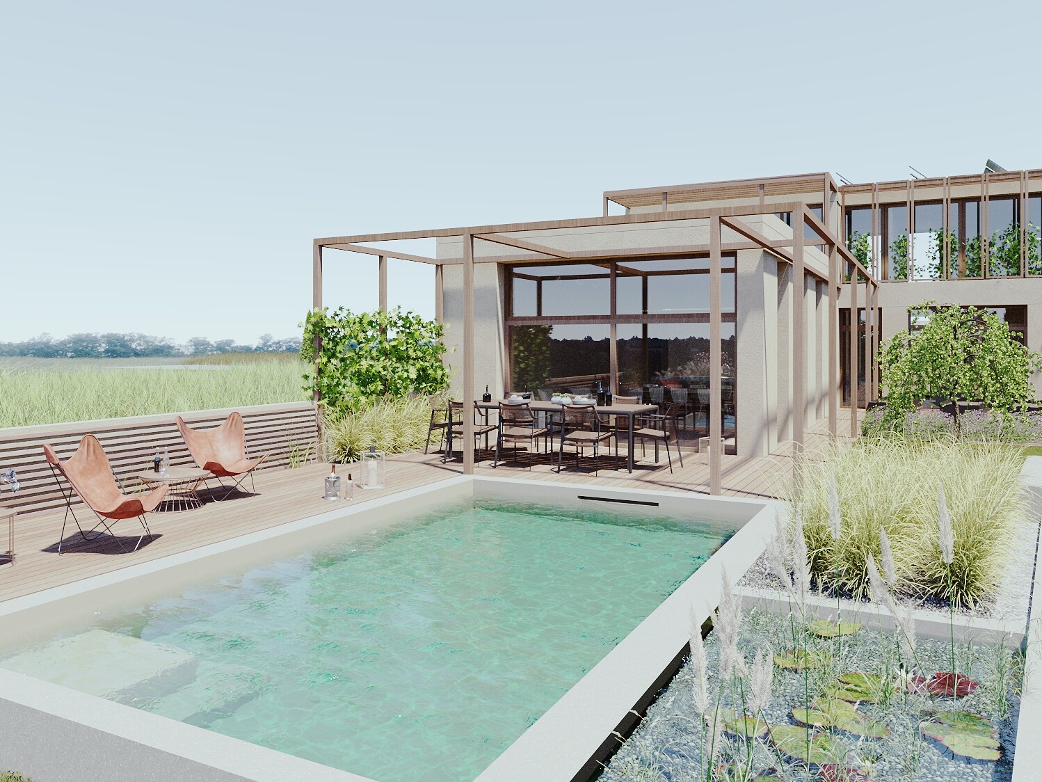 Hier wird persönlich, puristisch und vielschichtig gearbeitet. Unser Anspruch an die Architektur ist nachhaltig, ökologisch mit haptisch strukturellem Anspruch. Wir lieben die Sonne, den Wind, das Wasser, die Natur, die Kunst und Architektur.